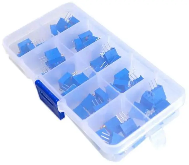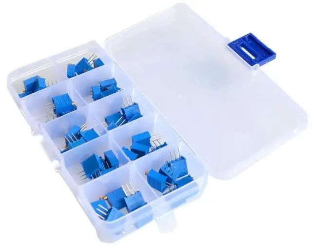 • 50pcs/lot 3296W series 500R 1K 2K 5K 10K 20K 50K 100K 200K 1M multi-turn potentiometer 10K Variable resistors With box set