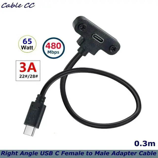 • Right Angle USB C Female to Male Adapter Cable, Type C Panel Mount for Laptop, Tablet and Mobile Phones