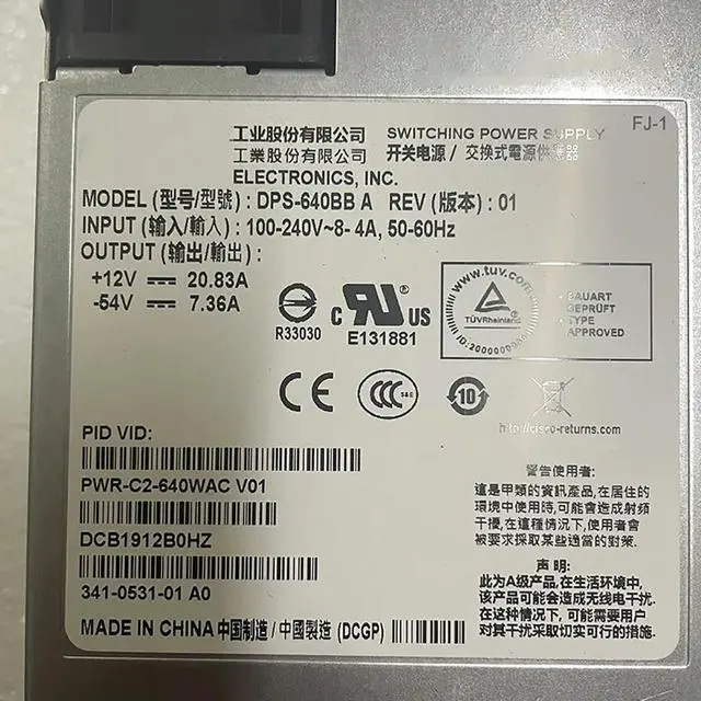 • 2960XR 3650 Switch Power Supply PWR-C2-640WAC