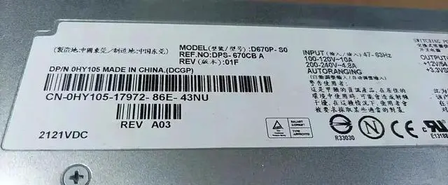 • PowerEdge HY105 0HY105 D670P-S0 670W Power supply