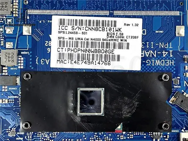 • LAPTOP MOTHERBOARD FOR 14-CF L24458-601 with CelN4000 64GeMMC Fully Tested to Work ly