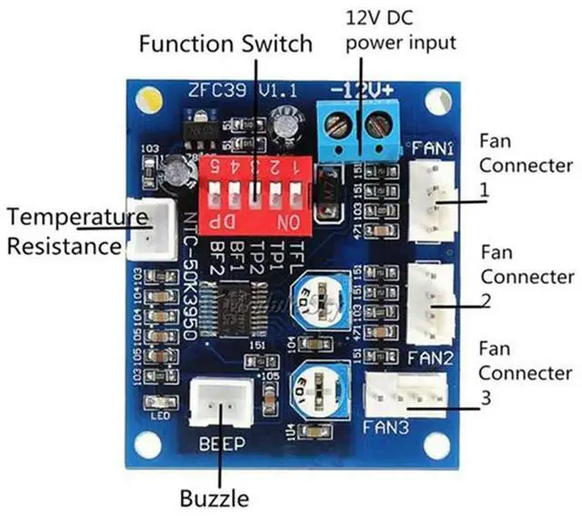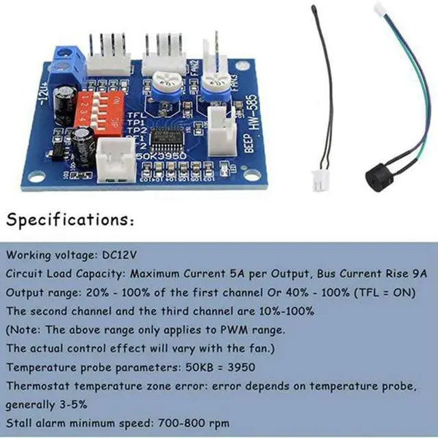 DC 12V 4 Wire High-Temp Fan Temperature Control Speed Controller CPU Module Temperature Alarm PWM PC CPU