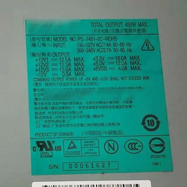 • PS-7451-2C-ROHS For DL320G4 Server Power Supply 394982-001 450W