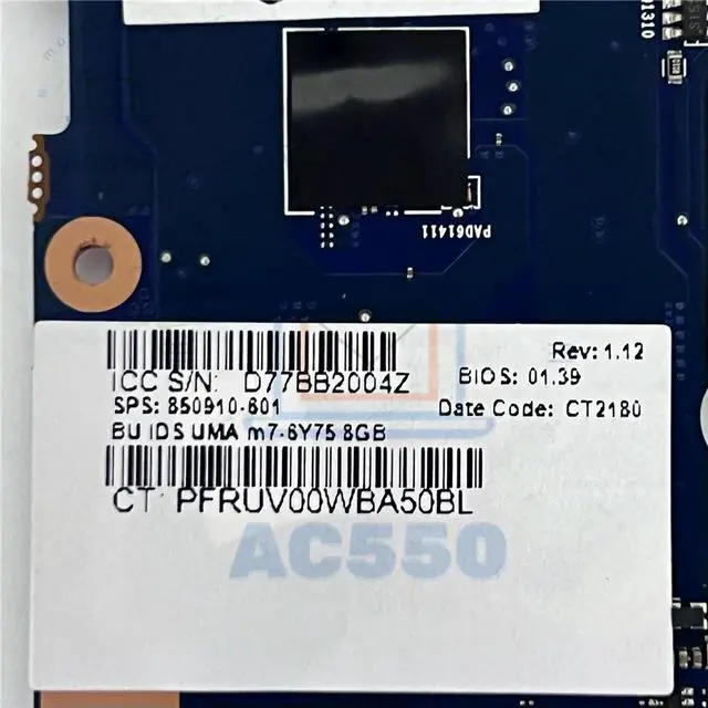 • Laptop motherboard 850910-601 6050A2776001 For Folio G1 X2 1012 with M7-6Y75 8G Fully tested, works ly