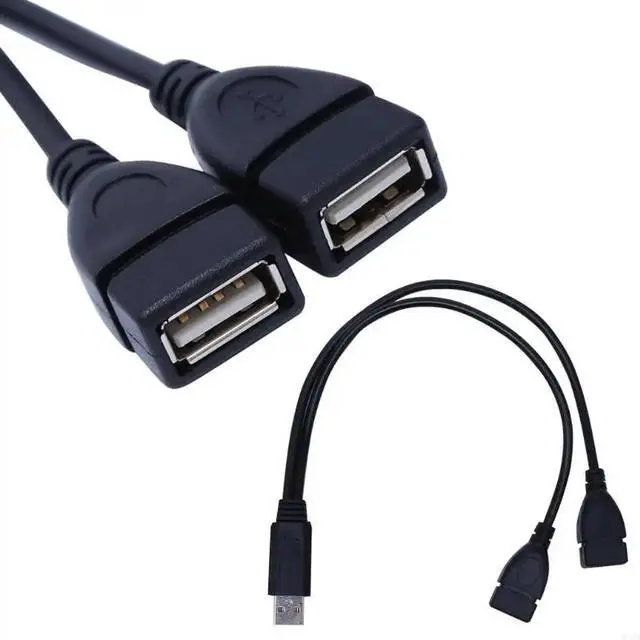 • USB 2.0 Type A 1 Male to Dual USB Female for Extra Power Data Extension Cord Adapter Splitter Y-Cable Black