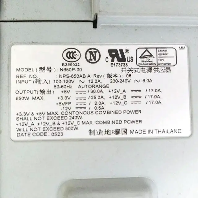 • N650P-00 For 670 SC1420 650W Server Power Supply NPS-650AB A G1767