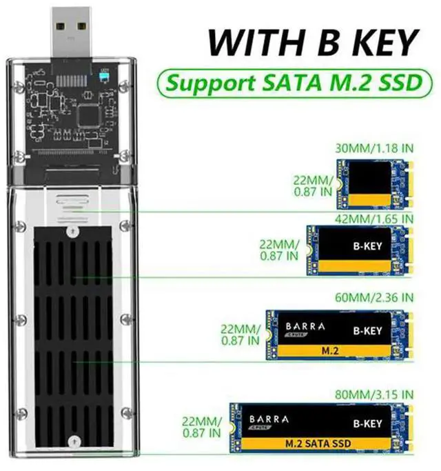 • External M.2 NGFF SATA SSD Enclosure High Speed USB3.0 Gen1 5Gb/S Transparent SATA SSD Hard Drive Case For PC