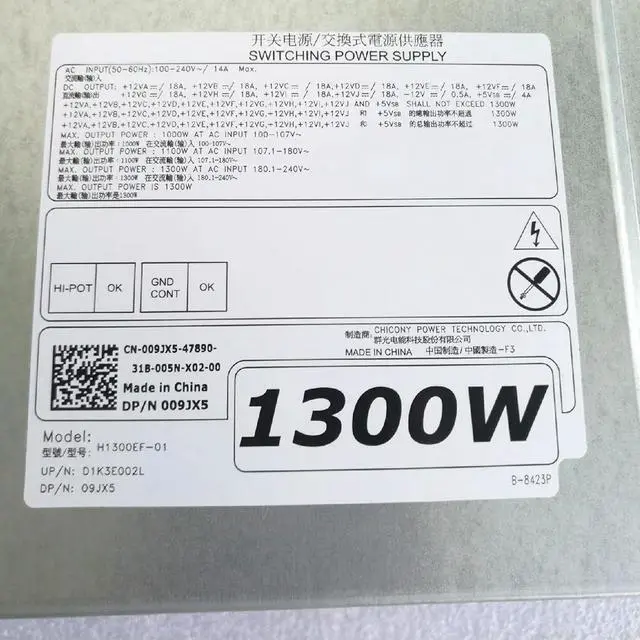 • For T7610 T7600 1300W Workstation Power Supply H1300EF-01 D1300EF-01 09JX5 MF4N5 8VC90