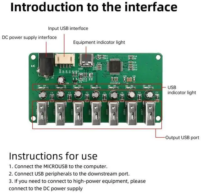 • DC5V USB 2.0 HUB Module 1 To 7 Port USB Hub Seven Port Splitter Expansion Module With LED 480Mbps-N33R