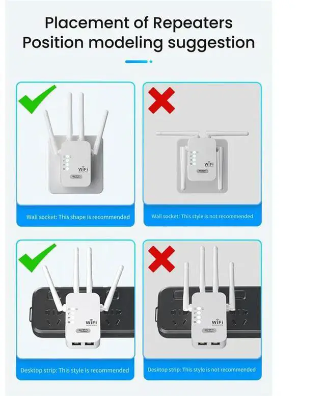 • 300Mbps Wifi Repeater Wireless WIFI Signal Extender Dual Band 5G 2.4G Network Amplifier Long Range Wifi Router Durable US Plug-N