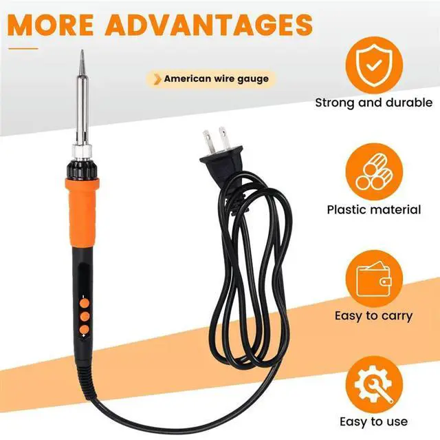 • 90W Internal Heating Electric Soldering Iron LED Digital Display With Switch Temperature Control Orange US Plug-N33R