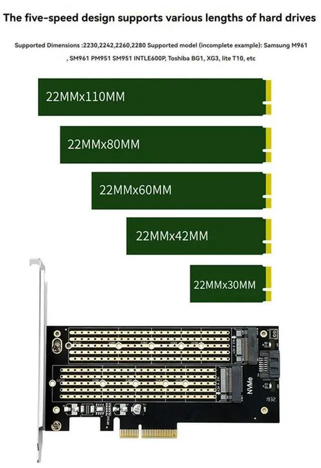 • M.2 Dual M.2 PCIE 4.0 Adapter For Nvme / NGFF SSD NVME (M Key) And SATA (B Key) SSD To Pcie X4 X8 X16 Slot