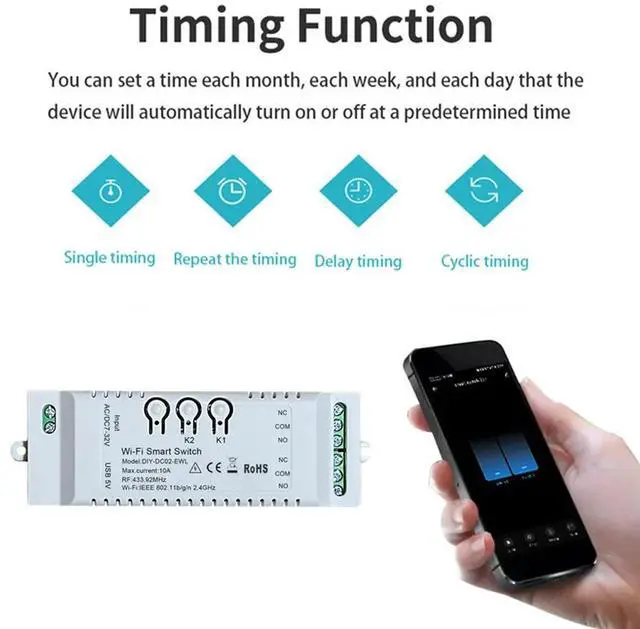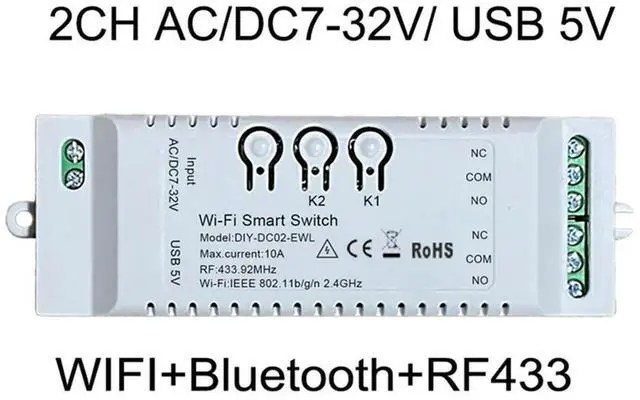• 2CH Wifi Smart Switch DIY Timer Ewelink 7-32V 2.4G Wifi+RF433+BT Home Automation Module For Alexa Google Home IFTT Easy Install-