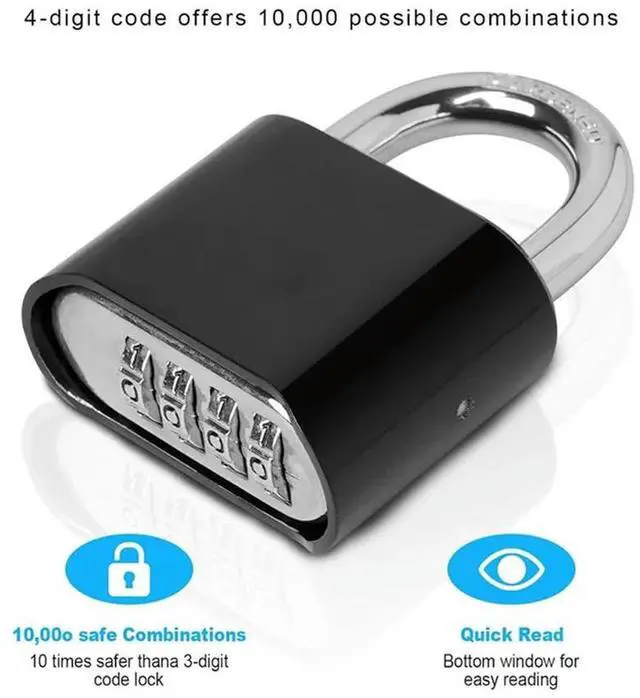 • 4-Digit Combination Lock Outdoor Padlock Waterproof Combo Lock For Gym Locker, Hasp Storage, Shed, Fence, Gate Black-N33R