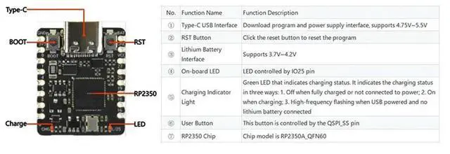 For Beetle RP2350 Mini Dual-Core Dev Board For Pi ARM Cortex-M33 RISC-V Chip For Programming C/C++ Micropyth