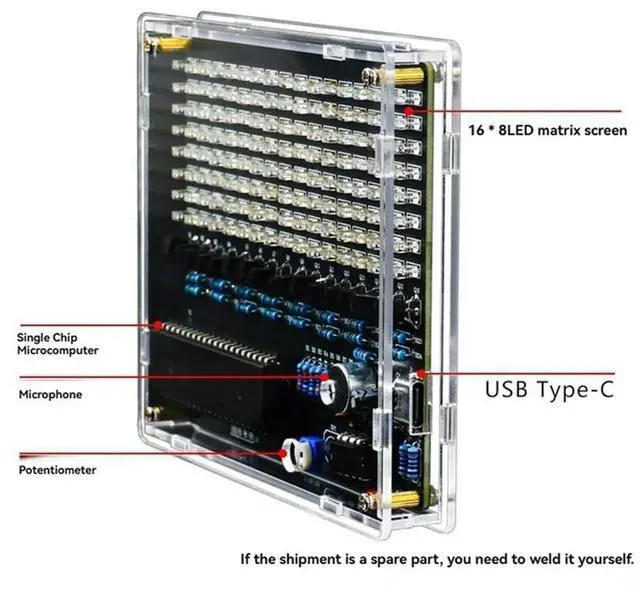 • DIY Sound Control LED Music Electronic Kits Audio Frequency Display PCB Soldering Project Practice DIY Electronic Kit
