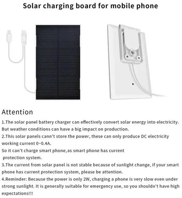 • Solar Panel Charger For Mobile Phone 2W Portable Mini Solar Panels With 2In1 Charging Cable IP65 For Camping Backpacking-N33R