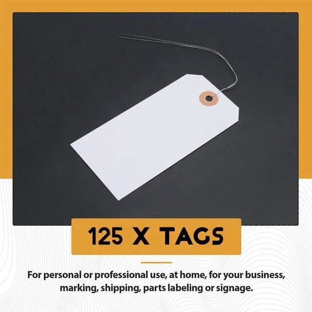 • 125 Pcs Hang Tags With Reinforced Eyelet And Wire, Pre-Attached Wire Cardboard For Labeling Price 4 3/4 X 2 3/8 Inch E