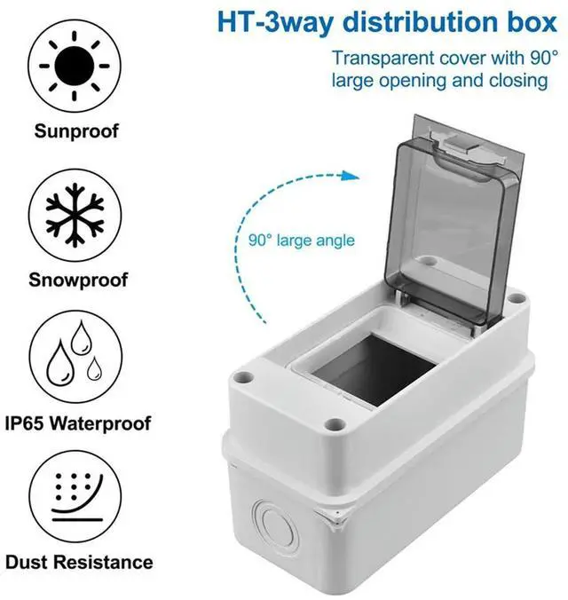 • 3 Way Distribution Protection Box, Waterproof Transparent Cover 3 DIN Rail Outdoor Distribution Junction Box 2Pcs