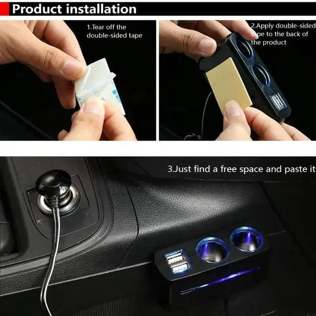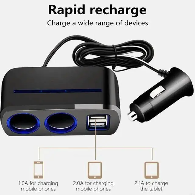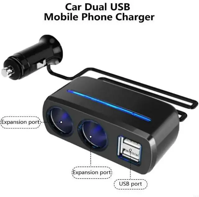 • Car 2 Socket Splitters 2xUSB Port Car Power Adapter