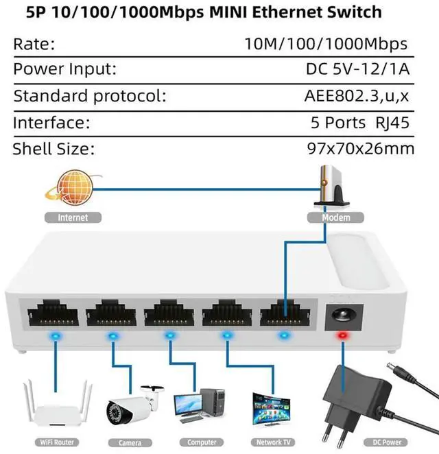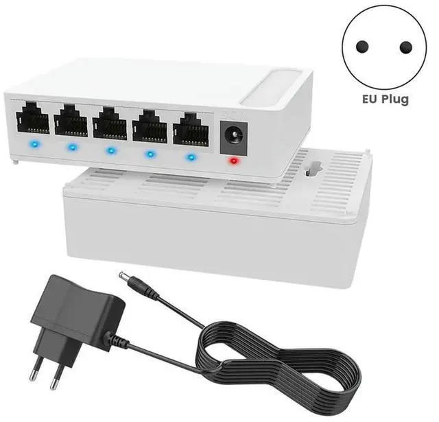 • 1000Mbps Network Ethernet Switch 8 Port Network Ethernet Switch Withvlan 5V Power Supply Network Switch Splitter EU Plug-N33R