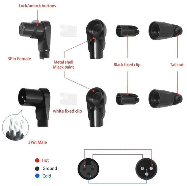 • Workmanshipp-XLR Connector, 3Pin XLR Microphone MIC Male Plug Female Jack Adapter 90 Degree Wire Connector For Speaker