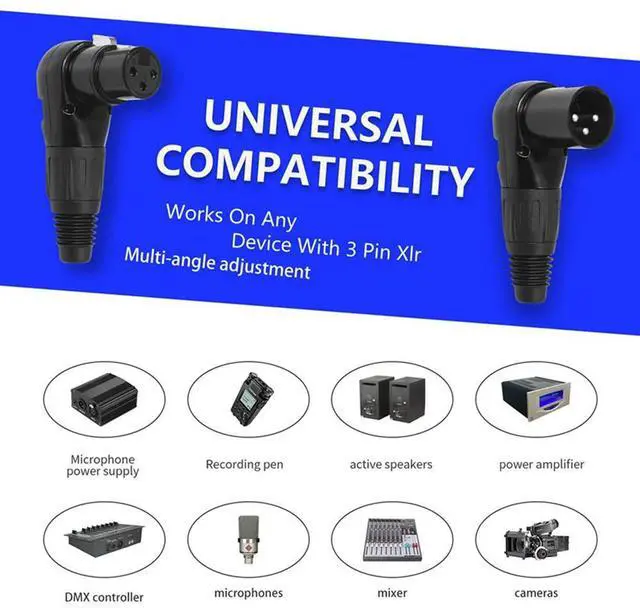 Workmanshipp-XLR Connector, 3Pin XLR Microphone MIC Male Plug Female Jack Adapter 90 Degree Wire Connector For Speaker