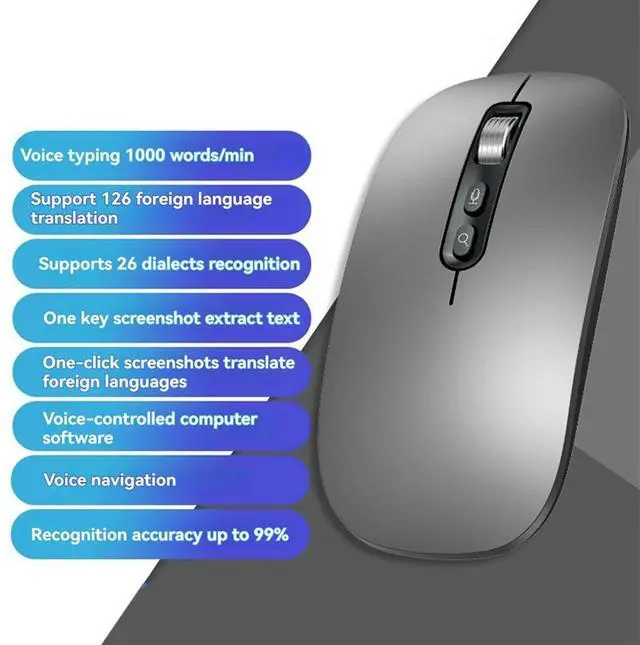 • AI Smart Voice Mouse Voice to Text Mouse Rechargeable 2.4G Wireless Bluetooth Mouse Voice Input Mouse for Laptops,AAA56