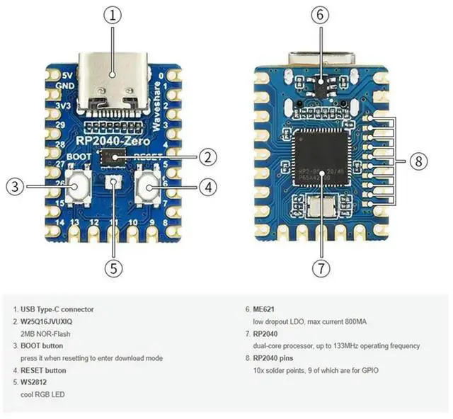 • RP2040-Zero Microcontroller PICO Development Board For Pi RP2040 Dual-Core Cortex M0+Processor 2MB Flash