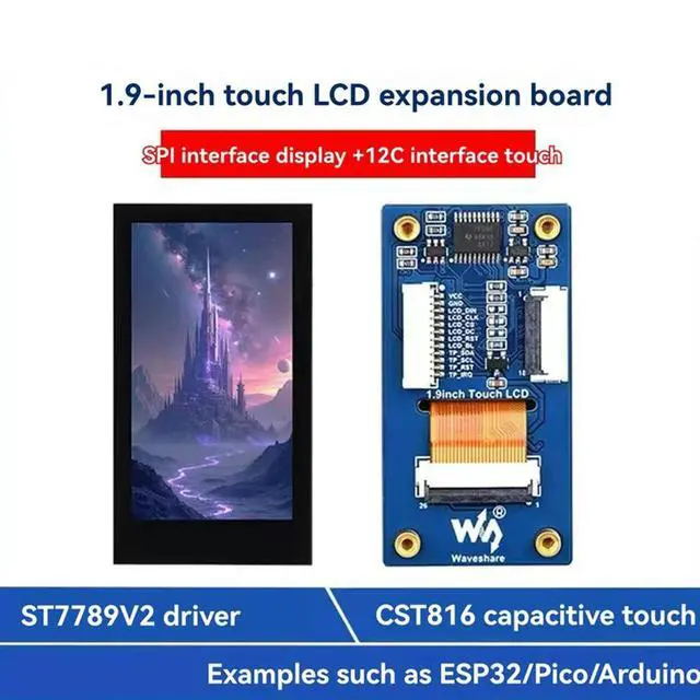 • Rpi 5/ESP32 1.9-Inch LCD Touch Display Development Board IPS ST7789V2 With Expansion Board SPI/I2C Interface