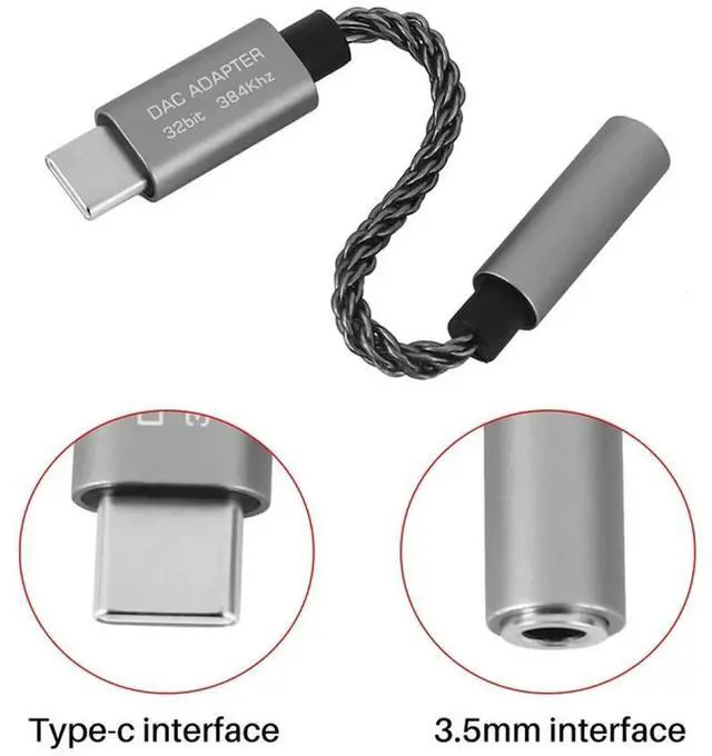 • ALC5686 USB Type-C To 3.5Mm DAC Headset Amplifier 16-32 Ohm 125DB PCM 32B/384Khz Digital Decoder Audio Adapter-N33R