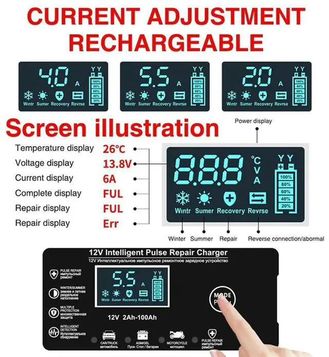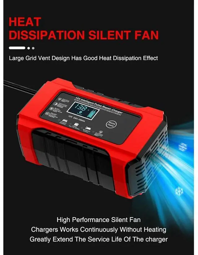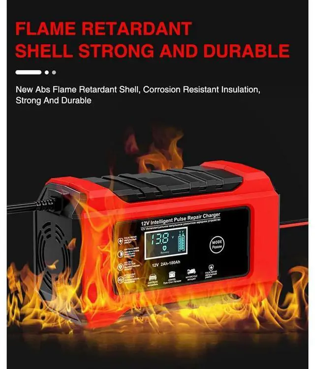 • Automatic Car Charger 12V 6A Pulse Repair Fast Power Charging Wet Lead Acid Charger Digital LCD Display-N33R