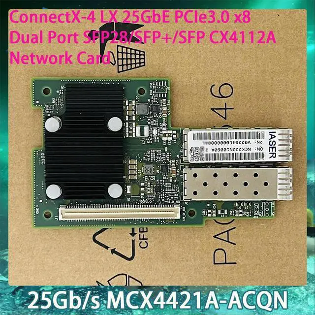 • 25Gb/s MCX4421A-ACQN For Mellanox ConnectX-4 LX 25GbE PCIe3.0 x8 Dual Port SFP28/SFP+/SFP CX4112A PC Network Card InfiniBand NIC