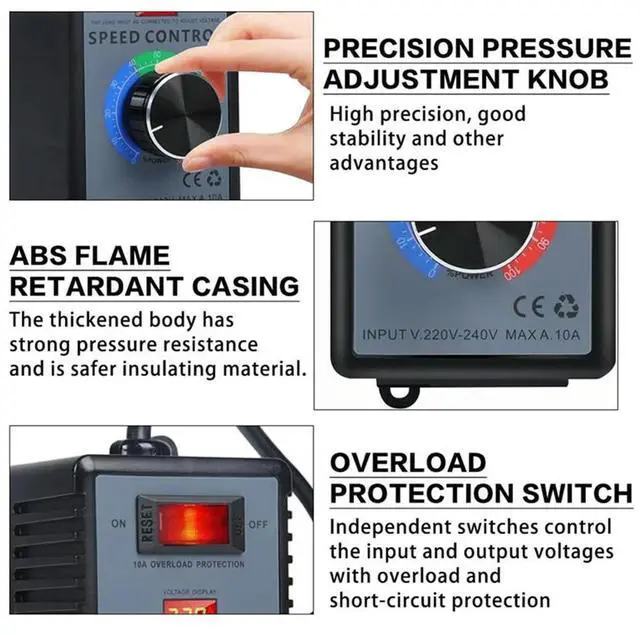• Speed Controller 230 V, Frequency Converter 230 V, Motor Voltage Regulator AC 220 V 10 A Highest Power 4000 W, EU Plug-N33R