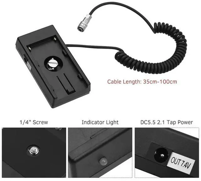 • Workmanshipp-Cinema Camera BMPCC 4K Power Supply Mount Plate Adapter With Spring Cable For NP-F970 F750 F550 Batt