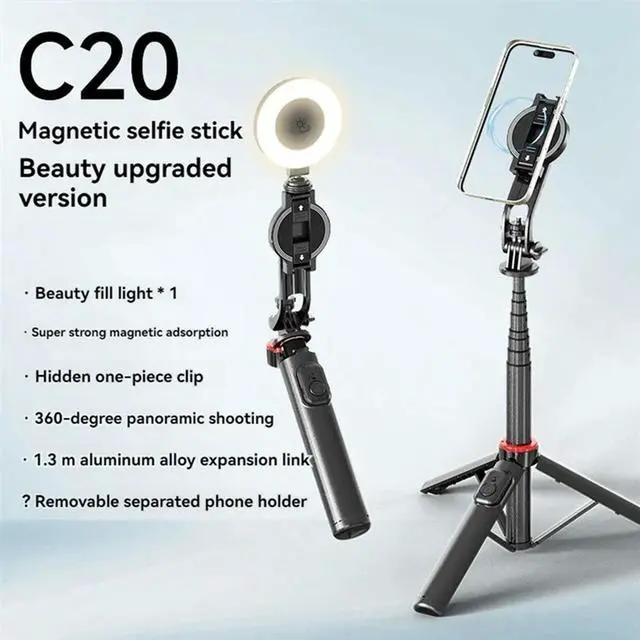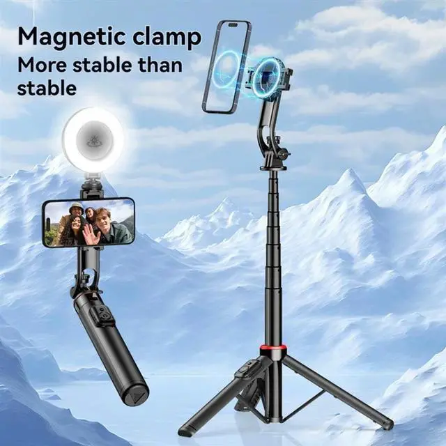 • Workmanshipp-Selfie Stick Extendable Cell Phone Tripod With Wireless Remote Tripod Stand Mini Fill Light Telescopic P