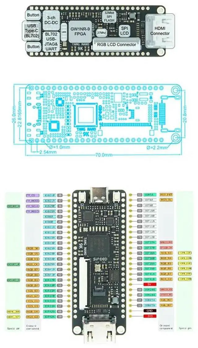 • Tang Nano 9K FPGA Development Board GOWIN GW1NR-9 RISC-V HDM Kit-N33R