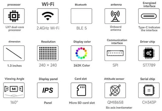• ESP32-S3 1.3Inch LCD Display Development Board ST7789 240X240 With3d Transparent Refractive Prism Mini TV For