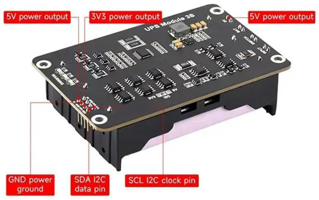 • For Pi 5 UPS HAT Support Li 5V Uninterruptible Power Supply Via I2C Bus Eu Plug