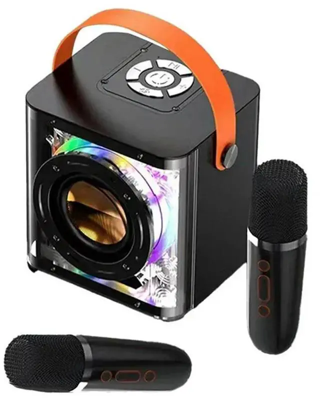 • Portable Mini Karaoke Machine Set Bluetooth Speaker Colorful Light Surround With 2 Wireless Microphones For Kid Adults-N33R