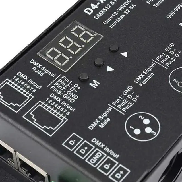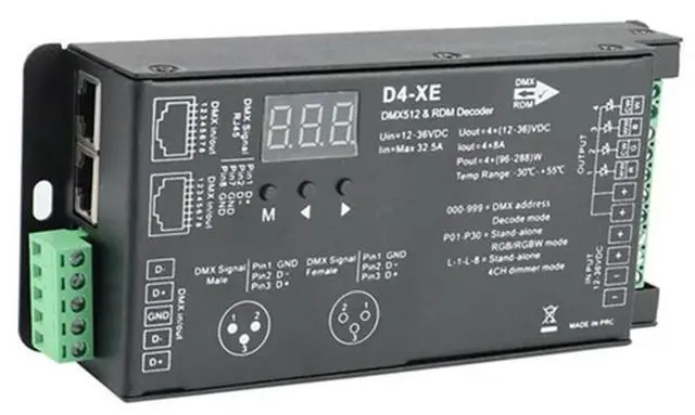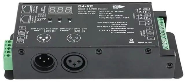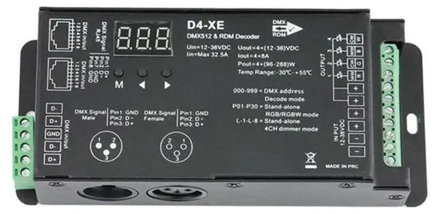 • 4CH D4-XE DMX Decoder Controller PWM Flicker Free Dimming 12V-36V Digital Display 2000Hz 500HZ For RGB LED Lights-N33R