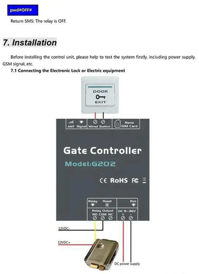 • G202 Mobile Phone GSM Gate Door Opener 4G Single Relay Switch Electric Gate Remote Controller 850/900/1800/1900Mhz-N33R