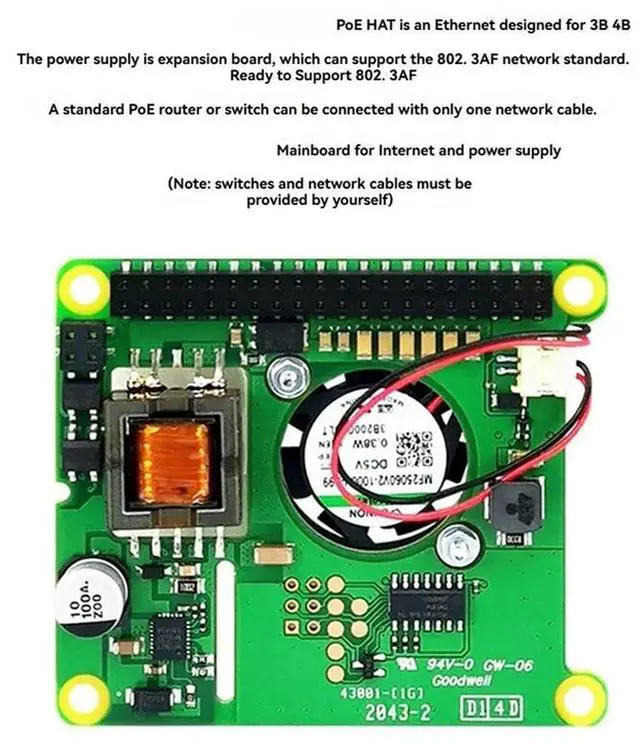 • For Pi 4 & 3 B+ Poe+ HAT Power Over Ether, Expanding Board Moudl Supports 802.3Af/At