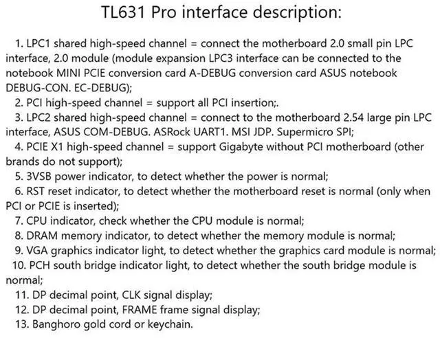 • 1 PCS TL631 Pro Diagnostic Card PCI PCI-E Mini PCI-E Motherboard Multifunction Desktop Laptop Diagnostic Analyzer Blac