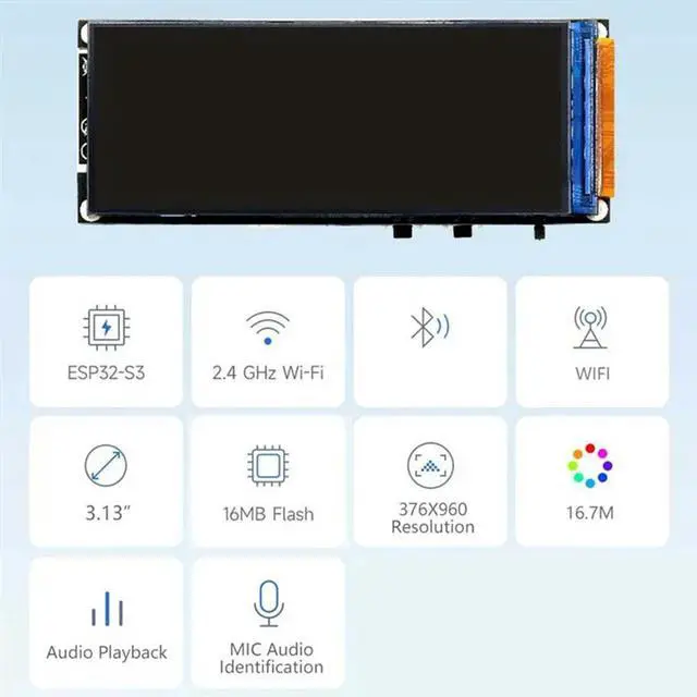 • ESP32-S3 Development Board 3.13-Inch Color LCD AI Deepseek Chat Robot WIFI&Bluetooth 376X960 16.7M Withcase