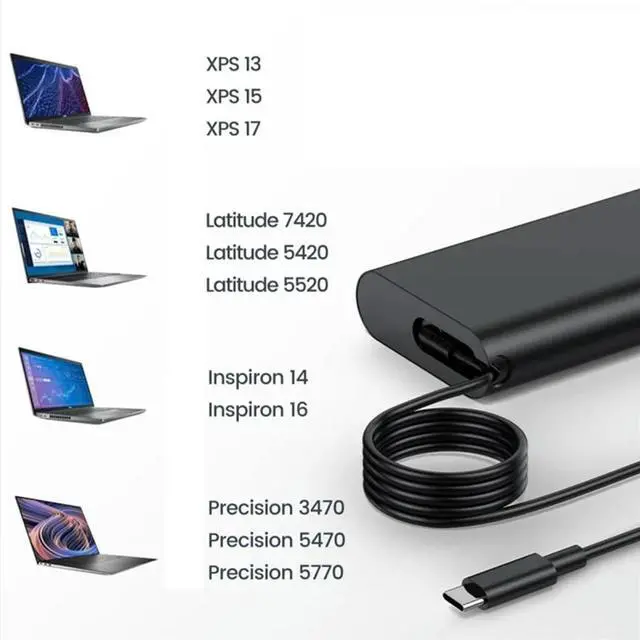 • 90W USB C Laptop Charger For XPS 15 17 Latitude 3000 7000 Series Precision 5470 3570 Type C AC Adapter Power Cord