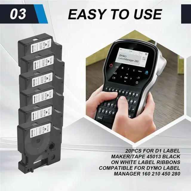 • 20Pcs For Dymo D1 Label Maker/Tape 45013 Black On White Label Ribbons Compatible For Dymo Label Manager 160 210 450 280-N33R