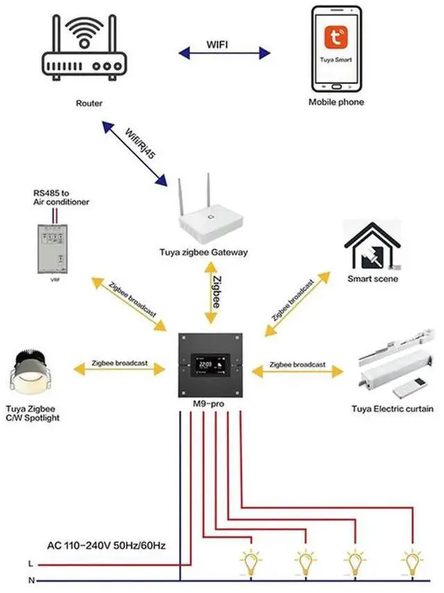 • Black Tuya Smart Multifunction Central Control Panel, Zigbee Compatible Wireless Lighting Dimming System-N33R