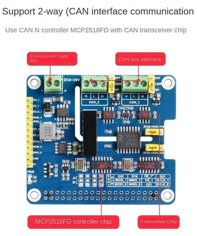 • 2-Channel Isolated CAN SPI Bus Expansion HAT For Expanding Multiple CAN Channels 2-Channel Isolated Expansion HAT
