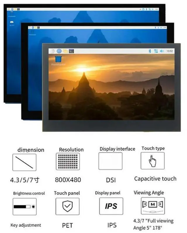 • Workmanshipp-7 Inch Capacitive Touch Screen For Pi 5/4B/3B+ 800X480 IPS Display Drive-Free CSI Cable With St
